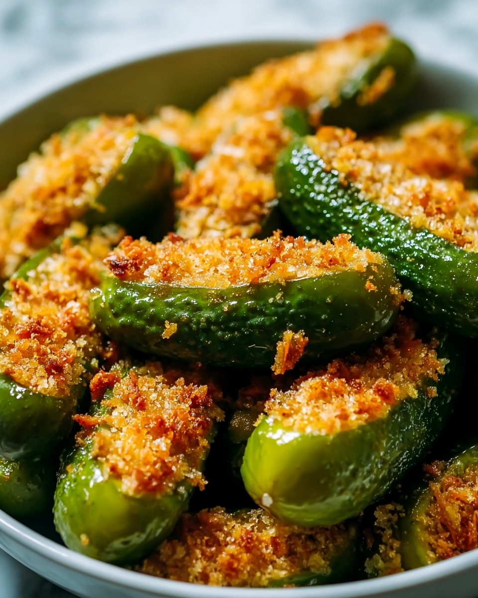Deliciously crispy air fryer stuffed pickles filled with a creamy blend of cream cheese, ranch seasoning, and shredded cheddar cheese. This easy appetizer is perfect for a quick snack or party bite with a gooey, cheesy center and a crunchy pickle exterior.