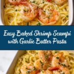 This Baked Shrimp Scampi recipe is a quick and flavorful seafood dish combining succulent shrimp with garlic, shallots, lemon, and a hint of spice, all baked to perfection and tossed with pasta for a comforting weeknight dinner.