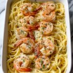 This Baked Shrimp Scampi recipe is a quick and flavorful seafood dish combining succulent shrimp with garlic, shallots, lemon, and a hint of spice, all baked to perfection and tossed with pasta for a comforting weeknight dinner.