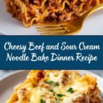 This Beef and Sour Cream Noodle Bake is a comforting, hearty casserole featuring a flavorful combination of ground beef, Italian sausage, and a creamy sour cream mixture layered with wide egg noodles and melted cheddar and Monterey Jack cheeses. Perfect for a family dinner, it combines savory meat sauce with creamy cottage cheese and aromatic seasonings, baked until bubbly and golden.