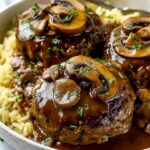 Bobby Flay’s Salisbury Steak offers a delicious twist on the classic comfort food, featuring juicy ground beef patties enhanced with a savory onion and garlic mixture, simmered in a rich mushroom and beef stock gravy. This hearty dish is perfect for a flavorful family dinner, combining tender steak patties with a luscious thickened gravy.