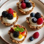 Finishing your granola cups with a flourish makes breakfast feel extra special. Try topping each cup with a dollop of Greek yogurt, a drizzle of honey, or a handful of fresh berries. These garnishes add creaminess, freshness, and a pop of vibrant color that will make your granola cups irresistible.
