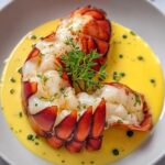 This Butter Poached Lobster recipe offers a delicate and luxurious way to enjoy fresh lobster meat. The lobster is first briefly boiled, then poached gently in a flavorful melted butter mixture infused with lemon juice and garlic, resulting in tender, succulent lobster pieces bursting with rich, buttery flavor. Perfect for an elegant dinner for two.