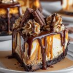 This decadent Caramel Chocolate Coffee Cheesecake features a rich and creamy blend of cream cheese with swirls of caramel, chocolate, and coffee flavors on a buttery graham cracker crust. It is baked to perfection, then chilled to achieve the ideal creamy texture. Topped with whipped cream, caramel pieces, and extra caramel sauce, it’s an indulgent dessert perfect for coffee and chocolate lovers alike.