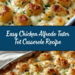 This Chicken Alfredo Tater Tot Casserole is a comforting and hearty baked dish combining tender shredded chicken in a creamy Alfredo sauce with peas, topped with crispy golden tater tots and melted mozzarella cheese. Perfect for a family dinner, it’s easy to prepare and bakes to bubbly, cheesy perfection.