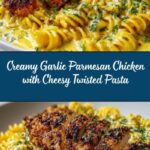 Creamy Garlic Parmesan Chicken with Cheesy Twisted Pasta is a comforting and indulgent dinner recipe featuring perfectly seared chicken breasts bathed in a rich garlic Parmesan cream sauce, served alongside deliciously cheesy twisted pasta. This meal combines tender chicken with a luscious sauce and gooey melted cheese for the ultimate comfort food experience, ready in just 35 minutes.