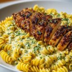 Creamy Garlic Parmesan Chicken with Cheesy Twisted Pasta is a comforting and indulgent dinner recipe featuring perfectly seared chicken breasts bathed in a rich garlic Parmesan cream sauce, served alongside deliciously cheesy twisted pasta. This meal combines tender chicken with a luscious sauce and gooey melted cheese for the ultimate comfort food experience, ready in just 35 minutes.