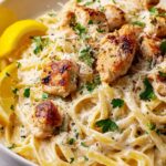 This Creamy Lemon Garlic Chicken Pasta is a deliciously rich and tangy dish featuring tender chicken breasts cooked to perfection and served over fettuccine pasta with a luscious lemon-infused garlic cream sauce. Perfect for a quick weeknight dinner that feels indulgent yet fresh, the combination of parmesan cheese, fresh lemon juice, and garlic makes this pasta dish irresistibly flavorful.