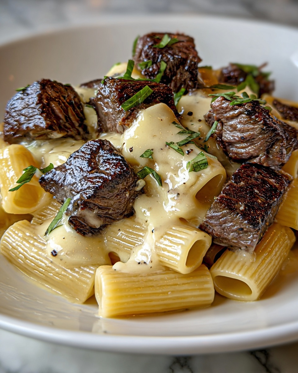 Serve the pasta in warmed bowls, swirling the noodles elegantly with a fork for an inviting presentation. You might also place slices of steak artfully on top, with parsley sprinkled generously. For a special occasion, sprinkle edible flowers or microgreens for unexpected flair that impresses guests without extra effort.