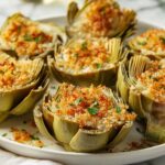 Take each dried artichoke heart and first dip it into the butter and garlic mixture, making sure it’s evenly coated. Then, roll it in the Parmesan-breadcrumb mixture until thoroughly covered. This two-step coating method is what delivers that signature crunch and cheesy flavor.