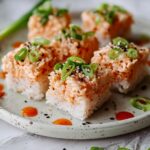 Crunchy Sushi Bites with Spicy Tuna feature a delightful combination of crispy pan-fried sushi rice topped with a flavorful spicy tuna mixture. These bite-sized snacks are perfect for appetizers or party treats, offering a satisfying crunch paired with creamy, spicy, and tangy flavors.