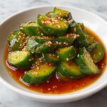 This Easy Asian Cucumber Salad is a refreshing and tangy dish featuring crisp Persian cucumbers tossed in a flavorful blend of sesame oil, soy sauce, rice vinegar, and chili oil. Quick to prepare and perfect as a side or light snack, this salad delivers a perfect balance of sweet, salty, and spicy notes with a delightful crunch.