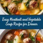 A hearty and wholesome Easy Meatballs and Vegetables Soup featuring tender homemade meatballs simmered with fresh vegetables in a flavorful broth. This nutritious soup is perfect for a comforting meal any day of the week.