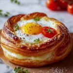 This recipe for Egg & Cheese Stuffed Bazlama Bread offers a delightful twist on traditional Turkish flatbread by stuffing it with a creamy feta and yogurt mixture, topped with eggs and baked to perfection. Ideal for breakfast or brunch, these mini bazlama breads are soft, savory, and bursting with flavors from sweet red pepper sauce, fresh herbs, and tangy feta cheese.