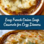 A comforting and savory French Onion Soup Casserole featuring caramelized onions layered with creamy soup and melted Swiss cheese, topped with toasted French bread. This easy casserole combines classic soup flavors with a baked dish perfect for a cozy meal.