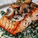 How to Serve Garlic Butter Salmon with Spinach and Mushrooms in Creamy Parmesan Sauce Recipe