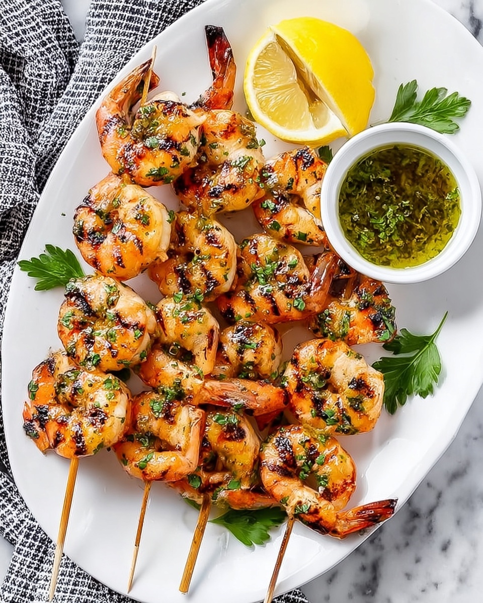 Pair these skewers with a crisp green salad or a chilled cucumber tzatziki for a refreshing contrast. For something heartier, fluffy rice or grilled vegetables complement the shrimp beautifully and balance out the garlic-forward marinade.