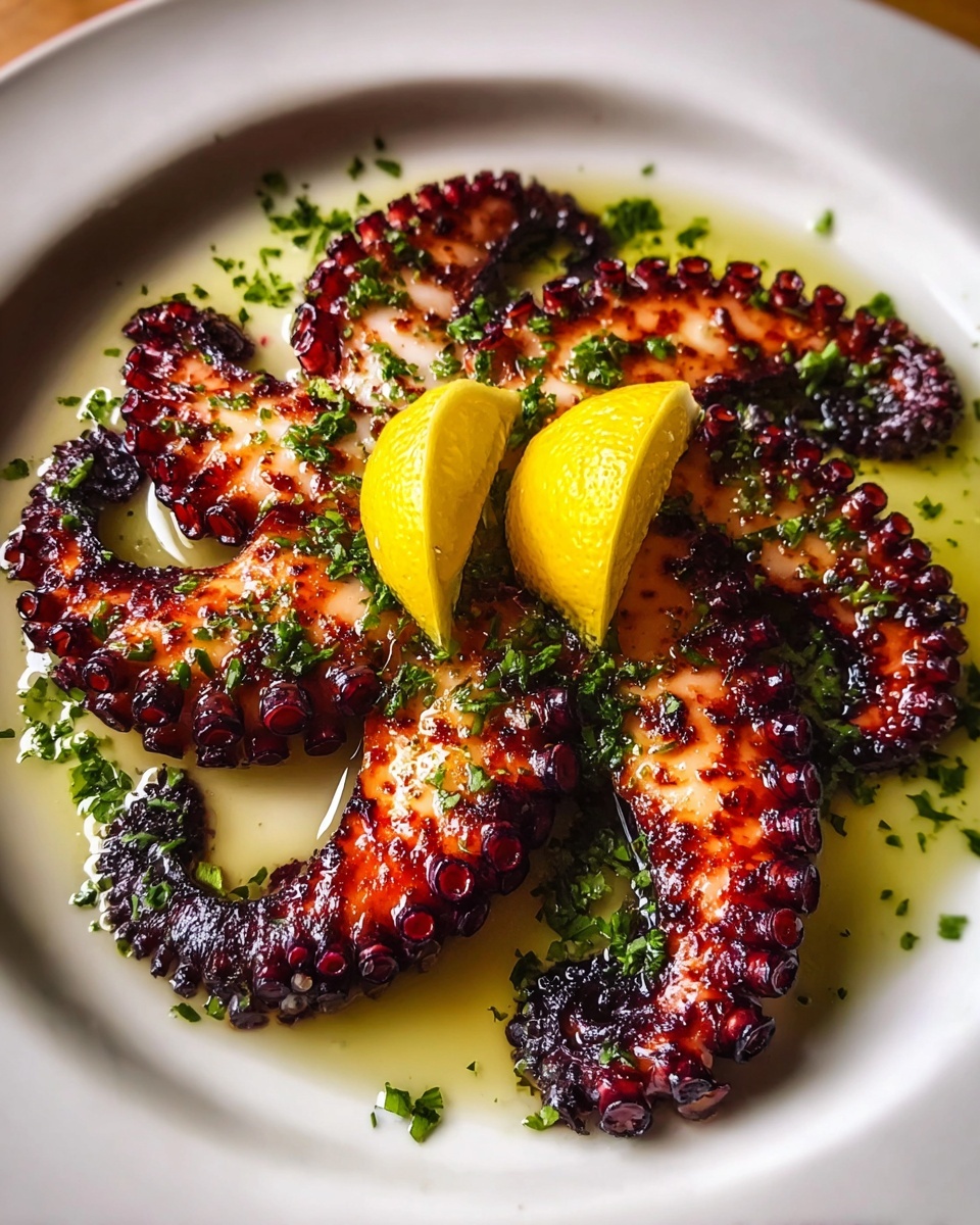 This Grilled Octopus recipe delivers tender, charred octopus infused with garlic and olive oil, perfect for a flavorful seafood dish. With simple ingredients and a quick grilling process, it’s an impressive yet easy meal for any occasion.