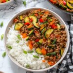 A quick and flavorful Ground Turkey Stir Fry featuring tender ground turkey, crisp vegetables, and a savory-sweet sauce, served over warm jasmine rice. This easy skillet meal comes together in just 30 minutes and is perfect for a healthy weeknight dinner.
