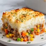 This Healthy Shepherd’s Pie is a nutritious twist on the classic comfort dish, featuring ground turkey and a creamy cauliflower-potato mash topping. Packed with vegetables like carrots, peas, and corn, and flavored with herbs and parmesan cheese, this shepherd’s pie is both hearty and wholesome. Perfect for a family dinner, it’s baked to golden perfection in under an hour.