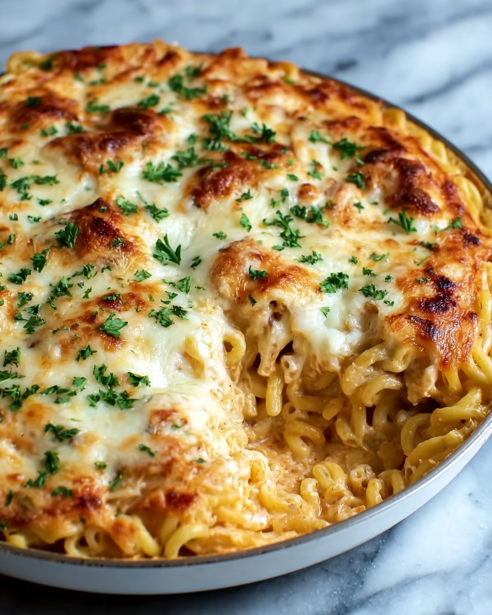 Try serving individual portions in small ramekins or cast-iron skillets for a cozy, rustic feel. Alternatively, scoop the pasta bake onto large plates and garnish with a drizzle of good-quality olive oil or a spoonful of pesto for that extra flair. It’s a crowd-pleaser no matter how you plate it!