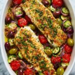 This Mediterranean Baked Fish recipe features tender fish fillets baked with a vibrant mix of herbs, garlic, lemon, and sweet chili sauce, accompanied by juicy cherry tomatoes, olives, zucchini, and onions. It’s a flavorful, healthy dish that brings the fresh tastes of the Mediterranean right to your table, perfect for a quick and wholesome dinner.