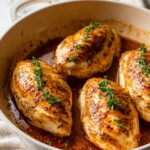 For family dinners or elegant gatherings, slice the chicken breasts and fan them out on a platter, layering with fresh herbs and a drizzle of olive oil. You can also serve the chicken over creamy risotto or alongside roasted vegetables, creating a hearty, inviting meal that feels both sophisticated and comforting.