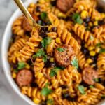 This One Pot Mexican Pasta recipe is a flavorful and easy-to-make dish combining spicy jalapeno sausage, fire roasted tomatoes, black beans, corn, and plenty of cheese. With the convenience of cooking everything in a single skillet or Dutch oven, it’s perfect for a satisfying weeknight meal that’s both hearty and comforting.