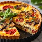 A savory Roasted Ratatouille Quiche featuring tender, caramelized vegetables layered in a flaky pie crust and topped with a rich, cheesy egg custard. Perfect for brunch, lunch, or a light dinner, this quiche combines classic Mediterranean flavors with a comforting texture.