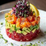 This vibrant Salmon Tartare with Beetroot, Avocado, and Lemon Vinaigrette is a fresh and elegant appetizer or light meal. Featuring sushi-grade salmon, earthy beetroot, and creamy avocado, all tossed in a zesty lemon and olive oil dressing, this dish offers a perfect balance of flavors and textures. Simple to prepare and visually stunning, it’s ideal for entertaining or a fancy weekday treat.