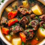 This simple homemade oxtail soup is a rich, flavorful stew made by slow-cooking tender oxtail with aromatic herbs and vegetables, resulting in a hearty broth perfect for comforting meals. Enhanced with garlic, lemon, and bay leaves, it is a satisfying dish ideal for serving with rice.