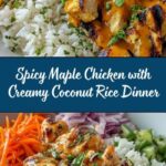 This Spicy Maple Chicken & Coconut Rice recipe combines tender, juicy chicken breasts marinated in a sweet and spicy maple glaze, served alongside fragrant coconut-infused jasmine rice. The balance of sweetness from the maple syrup, heat from red pepper flakes, and creaminess from coconut milk creates a flavorful and comforting meal perfect for a weeknight dinner or casual gathering.
