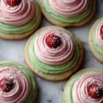 Delight in these Strawberry Frosted Matcha Cookies, featuring tender matcha-flavored cookies studded with white chocolate chunks and layered with vibrant matcha and creamy strawberry frostings. Perfectly balanced with the earthy bitterness of matcha and the sweet, tangy notes of freeze-dried strawberries, these cookies make a sophisticated treat for any occasion.