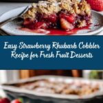 A delightful Strawberry Rhubarb Cobbler featuring a sweet and tangy fruit filling topped with a tender, golden biscuit crust, perfect for a comforting dessert that serves 8.
