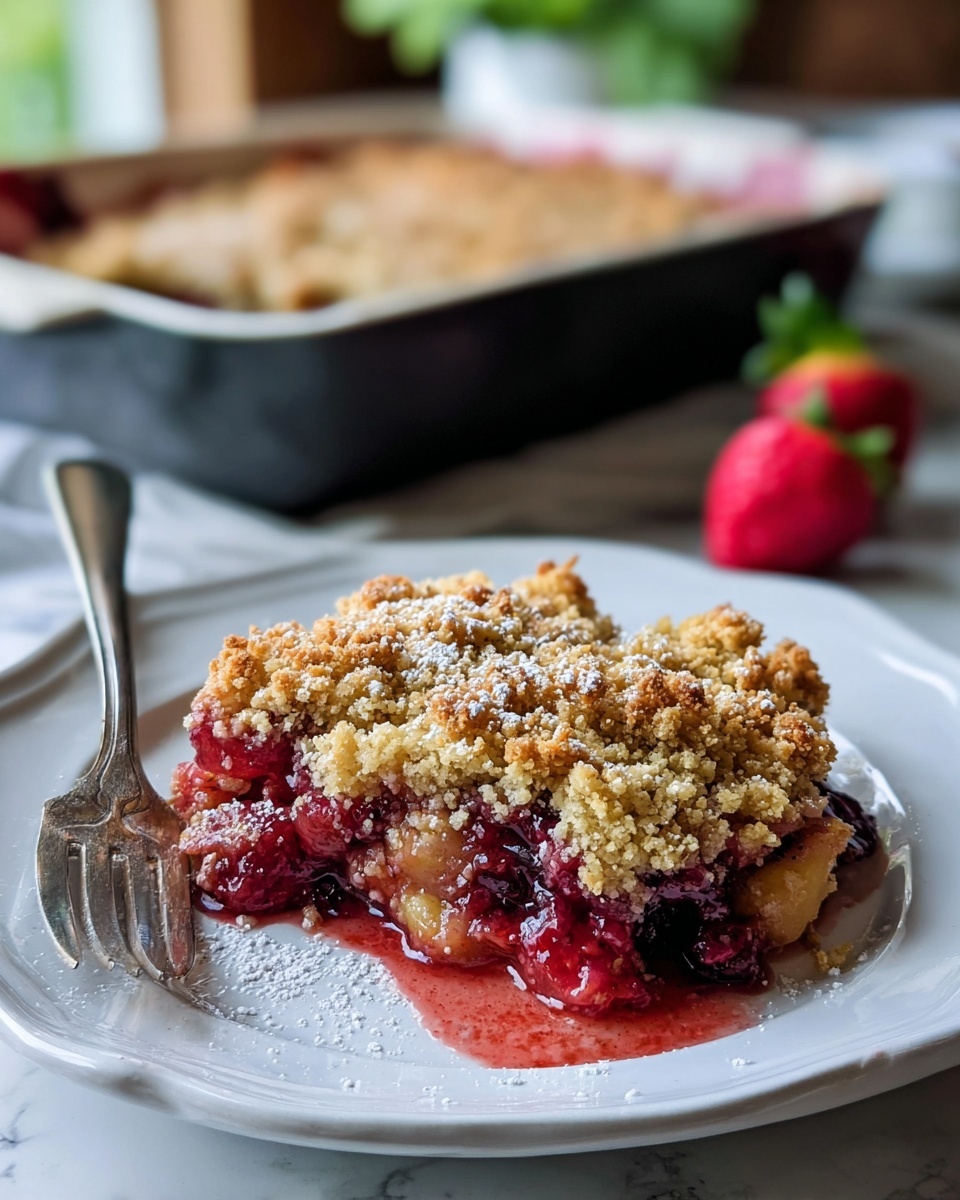 Leftover Strawberry Rhubarb Cobbler Recipe keeps wonderfully in an airtight container inside the refrigerator for up to 3 days. Make sure to cover it well to maintain the soft, juicy texture of the fruit without drying out the topping.