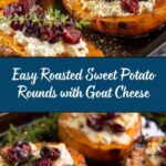 These Sweet Potato Rounds with Goat Cheese & Cranberries Recipe rounds make a fantastic appetizer or side for a holiday spread or casual get-together. Pair them with a crisp green salad, roasted meats, or grilled vegetables for a well-rounded meal. They also complement charcuterie boards wonderfully, adding a sweet and tangy contrast to cured meats and cheeses.