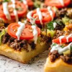 This Taco Pizza recipe combines the bold flavors of a classic taco with the cheesy goodness of a traditional pizza. Featuring seasoned ground beef, melty cheddar and mozzarella cheeses, and fresh toppings like lettuce, tomatoes, and olives, it’s a vibrant and delicious meal perfect for a family dinner or casual gathering.