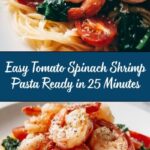 This Tomato Spinach Shrimp Pasta is a quick and delicious meal featuring tender shrimp sautéed with garlic, cherry tomatoes, and fresh spinach, tossed with perfectly cooked pasta and finished with Parmesan cheese and a touch of butter. Ready in just 25 minutes, it’s a flavorful and healthy dinner option that combines succulent seafood with vibrant vegetables and Italian seasonings.